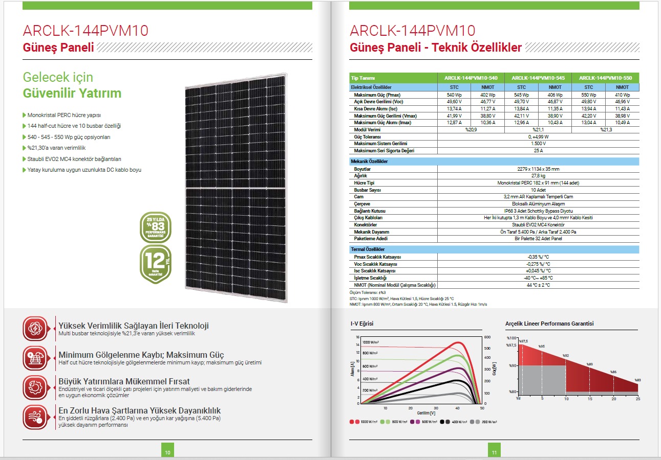 Arçelik 550 Wp Perc Mono Solar Güneş Paneli PV Module