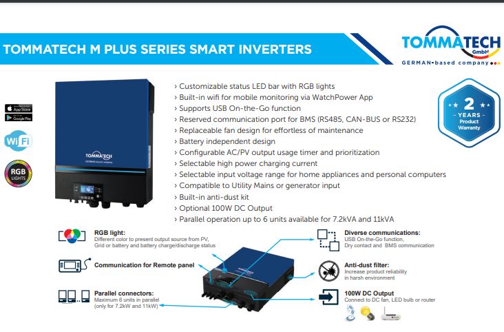 › Up to 6 units can operate in parallel, available for 7.2kVA and 11kVA models